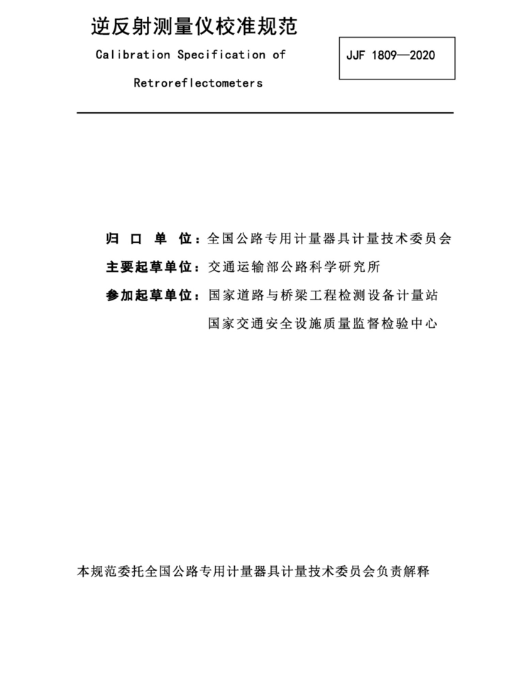 JJF 1809-2020 逆反射測量儀校(xiào)準規範