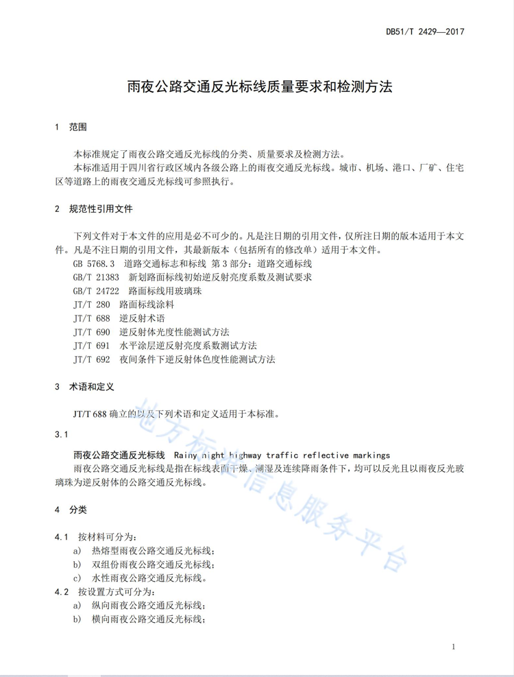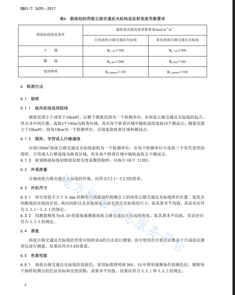 DB51/T 2429—2017 雨(yǔ)夜公路(lù)交通(tōng)反光(guāng)标線質量要(yào)求和(hé)檢測方法