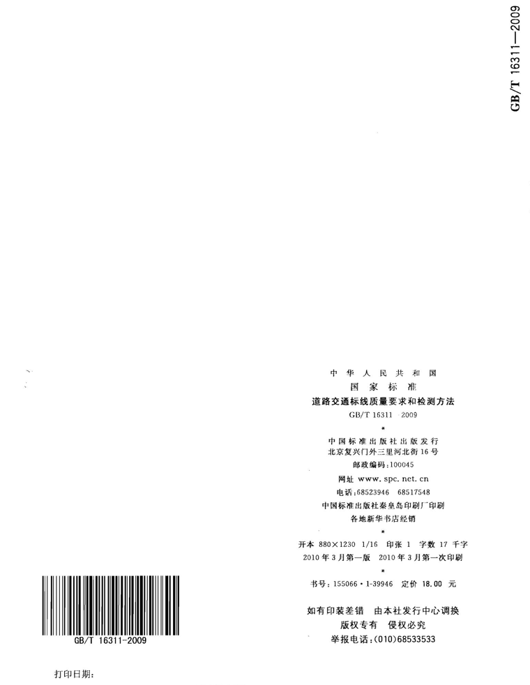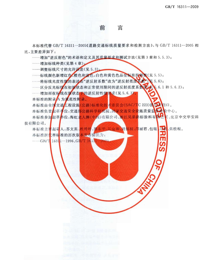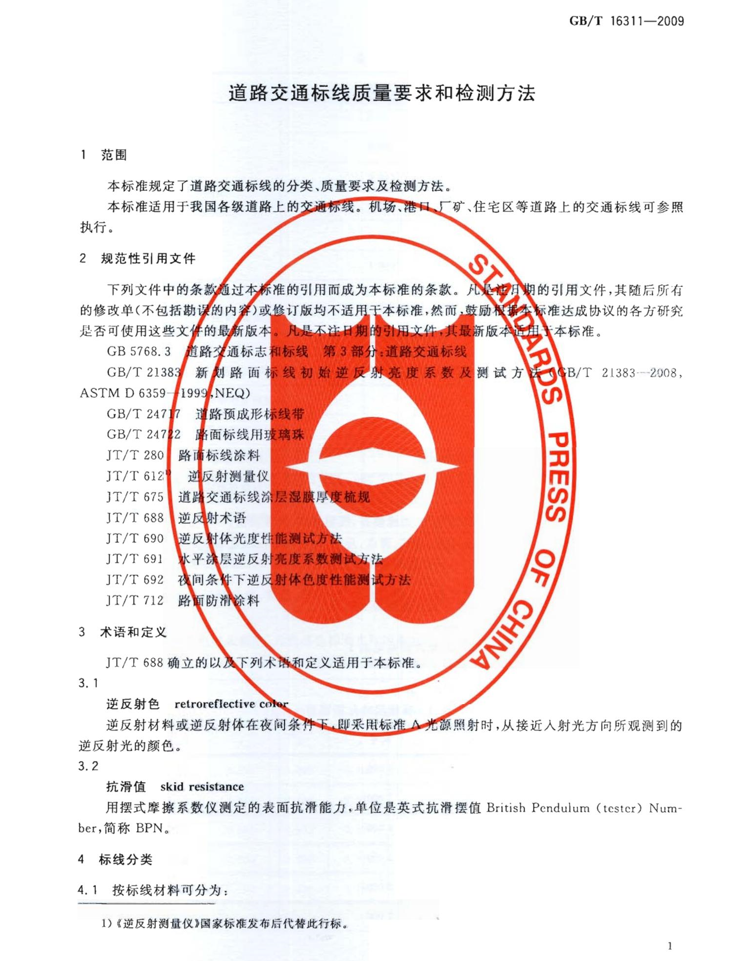 TB/T 16311-2009 道(dào)路(lù)交通(tōng)标線質量要(yào)求和(hé)檢測方法