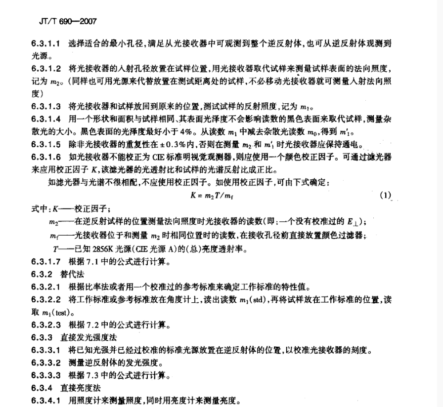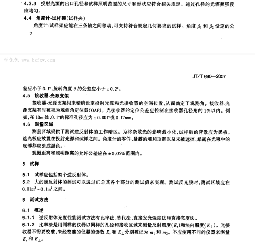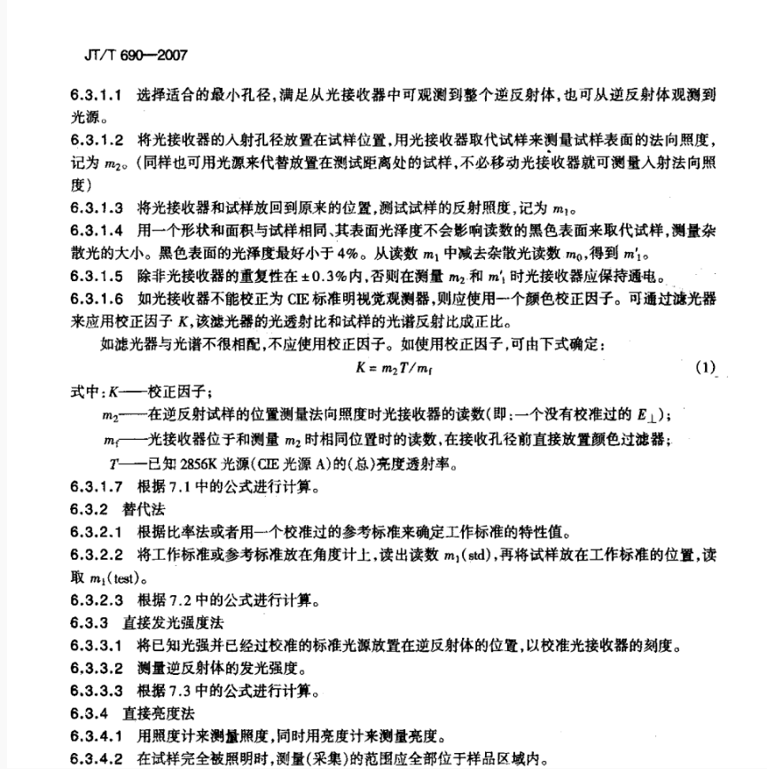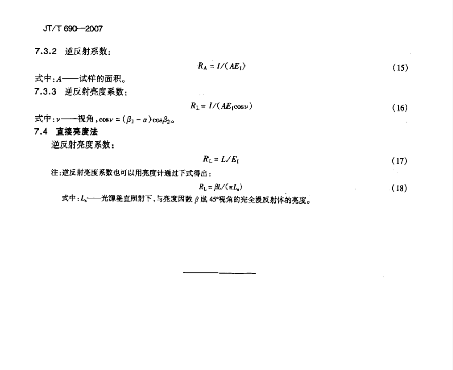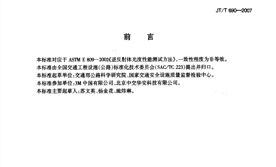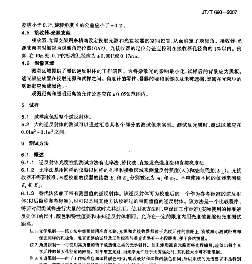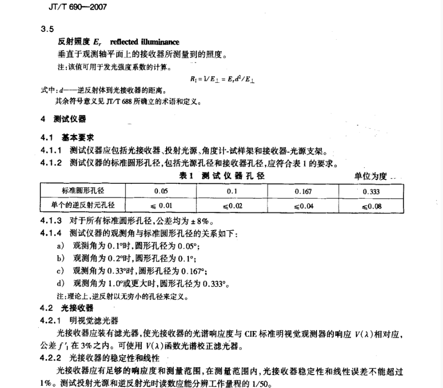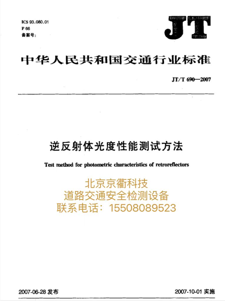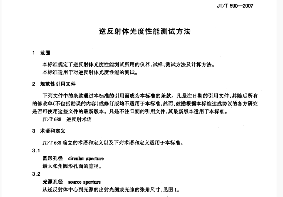 JT/T 690-2007 逆反體(tǐ)光(guāng)度性能(néng)測試方法标準