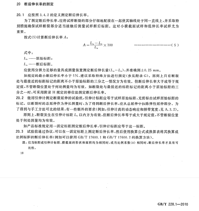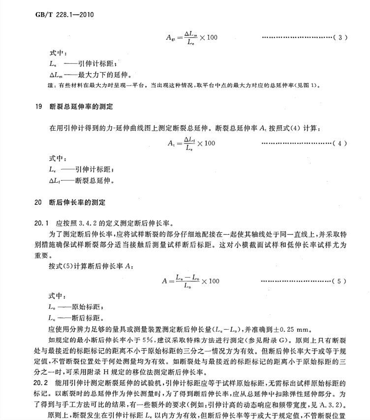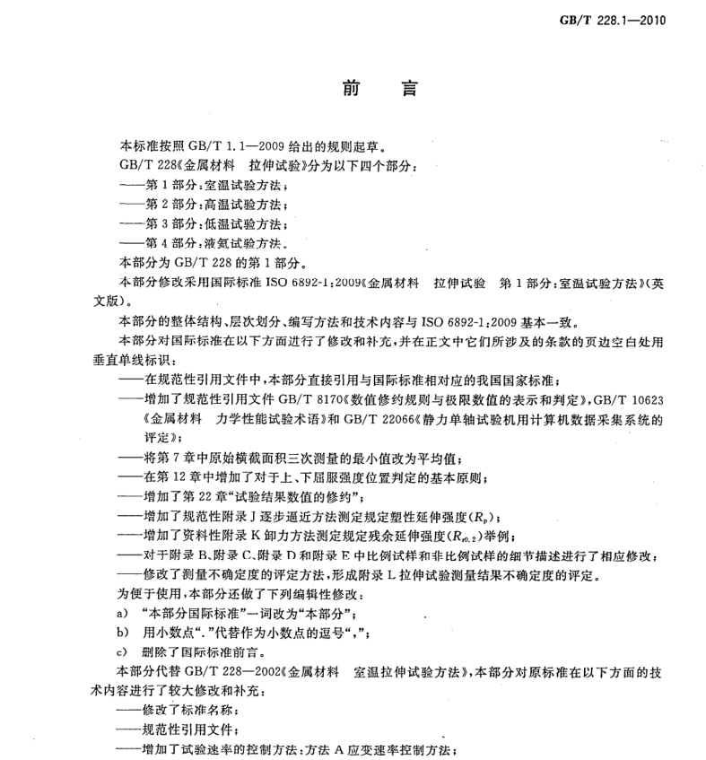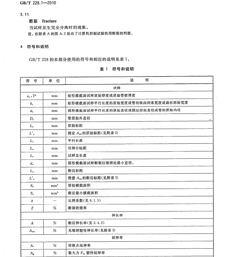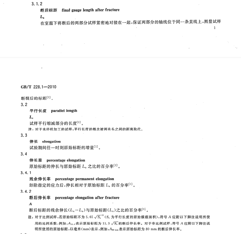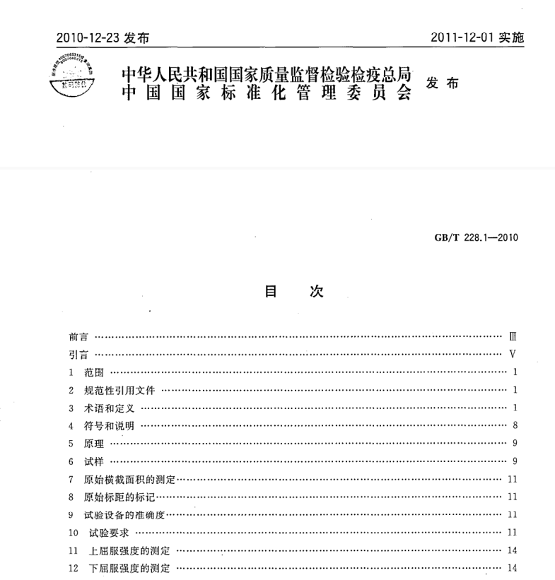GB/T 228.1—2010 金(jīn)屬材料拉伸試驗 第一(yī)部分(fēn):室溫測驗方法