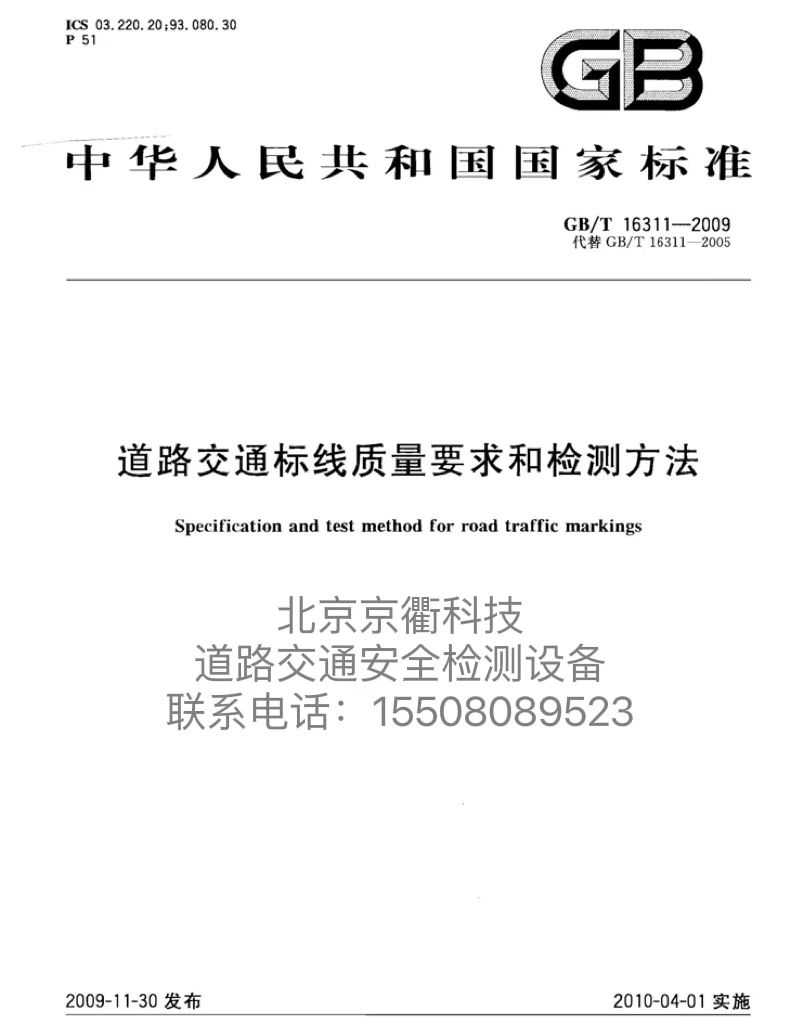TB/T 16311-2009 道(dào)路(lù)交通(tōng)标線質量要(yào)求和(hé)檢測方法