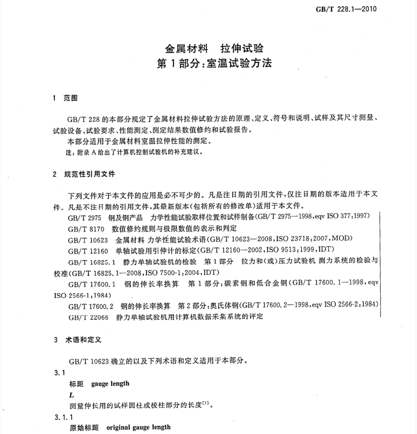 GB/T 228.1—2010 金(jīn)屬材料拉伸試驗 第一(yī)部分(fēn):室溫測驗方法